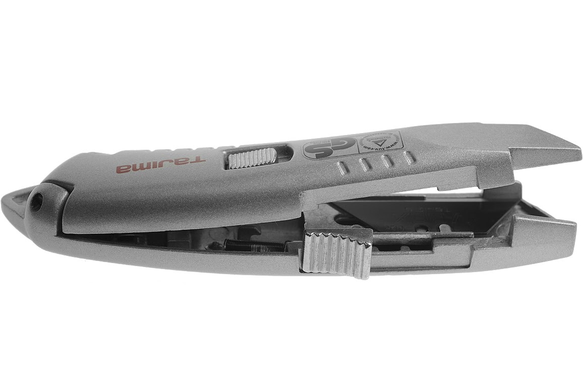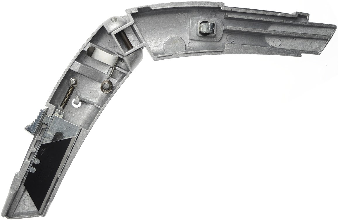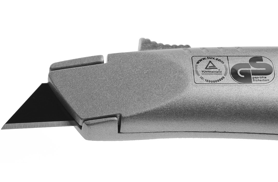 Dit veiligheidsmes is uitgevoerd in massief aluminium. Het lemmet is in 3 standen te plaatsen.