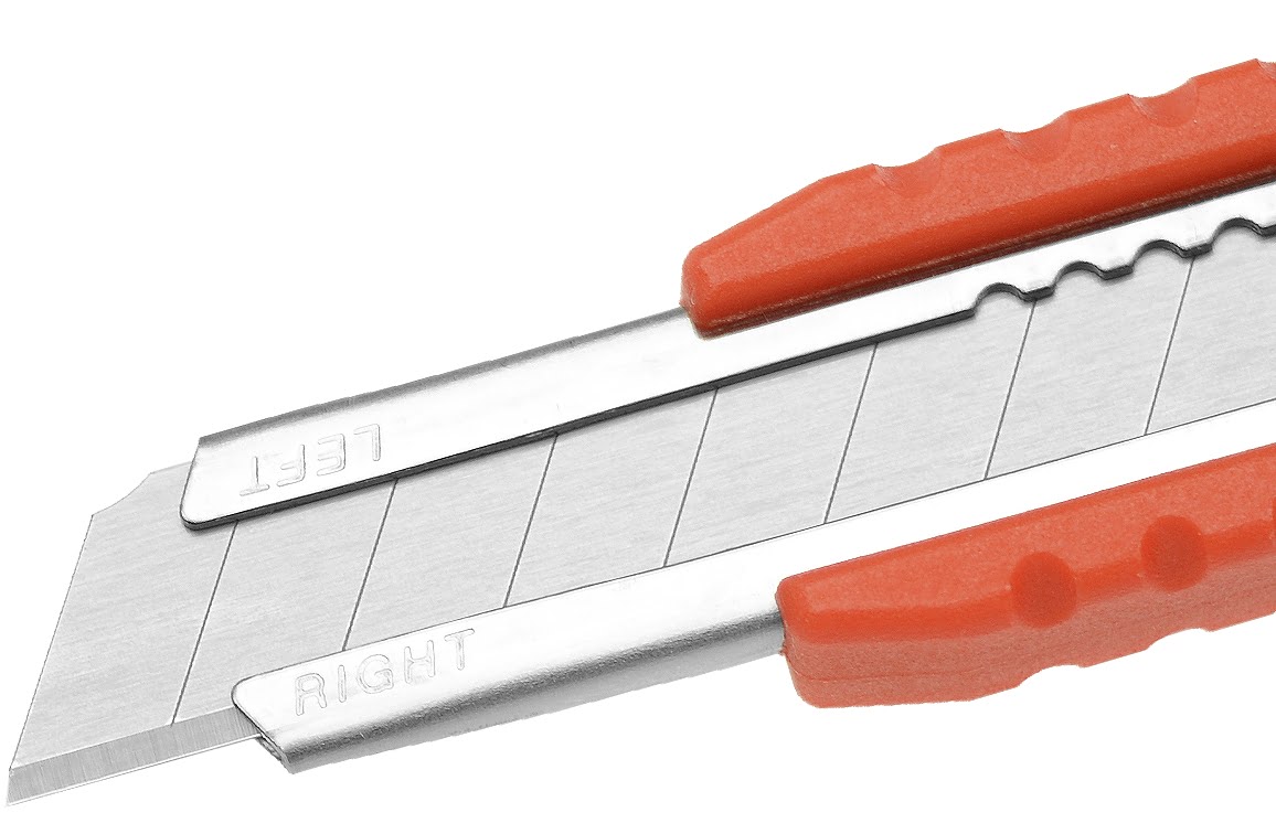 Voor zowel links- als rechtshandig gebruik. Het lemmet is dus in 2 posities te plaatsen.
