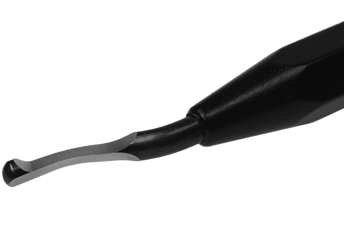 Deze mesjes nemen automatisch de juiste hoek t.o.v. het werkstuk aan. Geschikt voor bijv. binnenkant van rondingen of rechte stukken staal, aluminium, koper en kunststof.