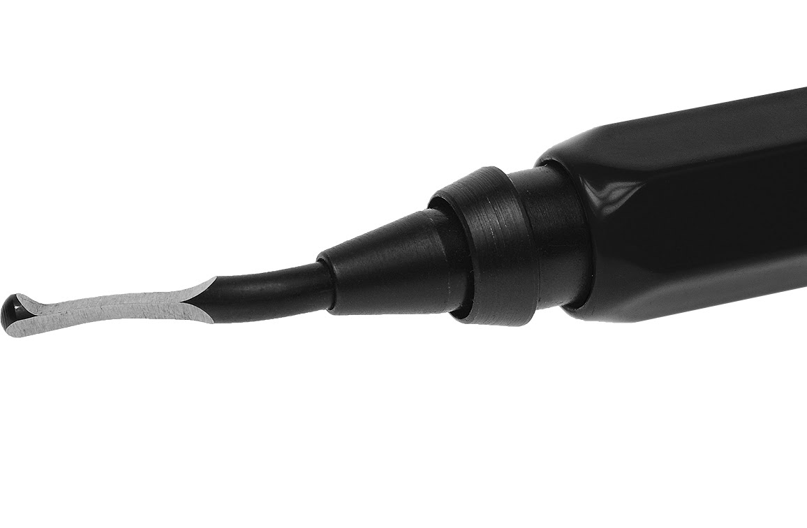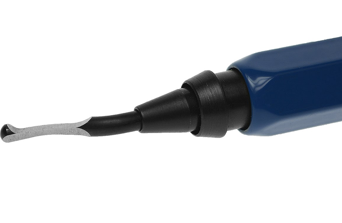 Deze mesjes nemen automatisch de juiste hoek t.o.v. het werkstuk aan. Geschikt voor bijv. binnenkant van rondingen of rechte stukken staal, aluminium, koper en kunststof.