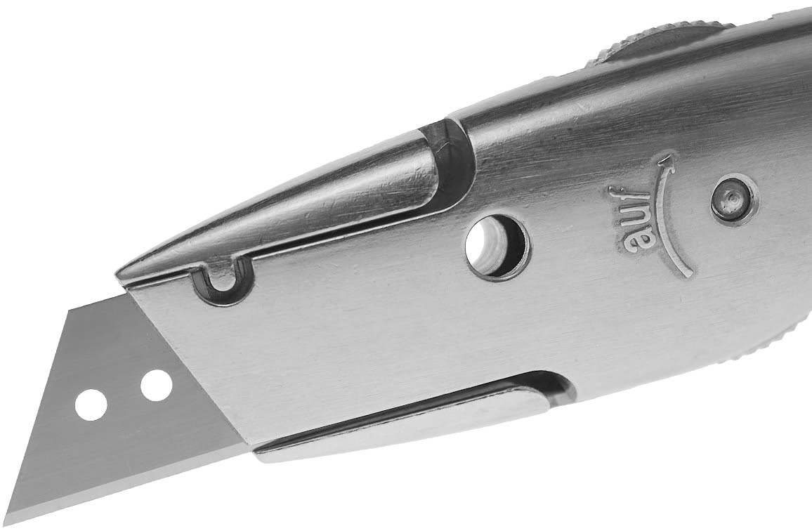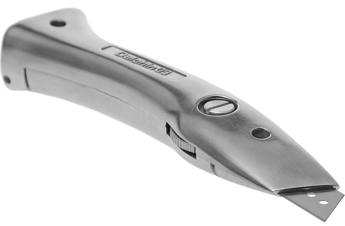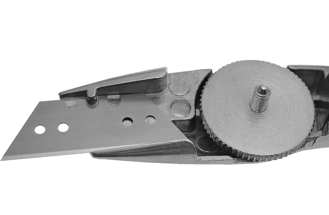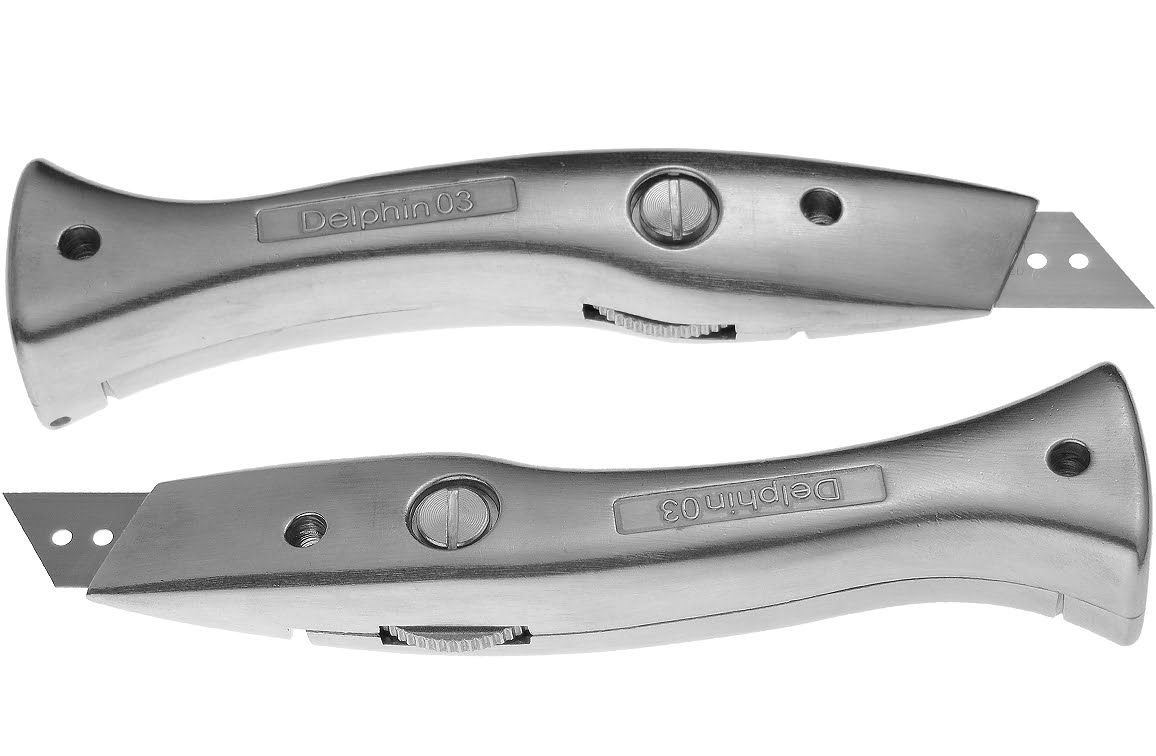 Standaard worden er geen messen meegeleverd met deze Delpin meshouder. Geschikt voor alle types "trapezium (recht) messen" en "Haakmessen" van reservemespunt.nl.