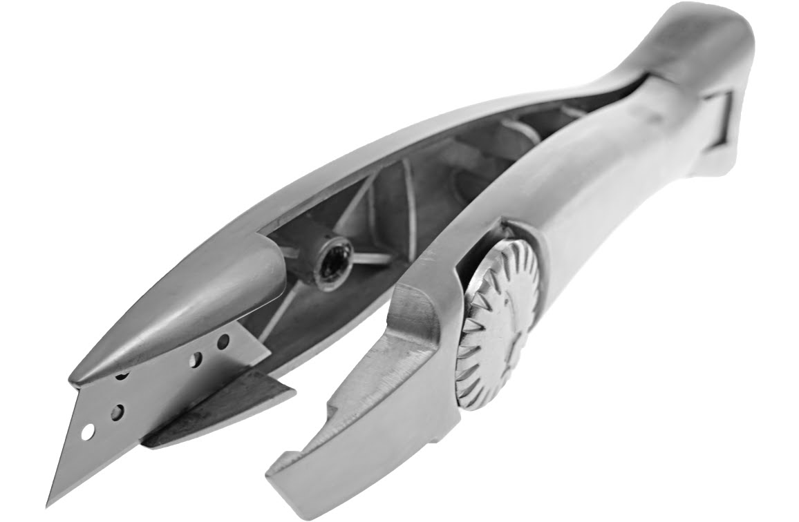 Het wisselen van messen gaat erg gemakkelijk bij dit kokermes; dankzij de magnetische voorzijde van de meshouder.